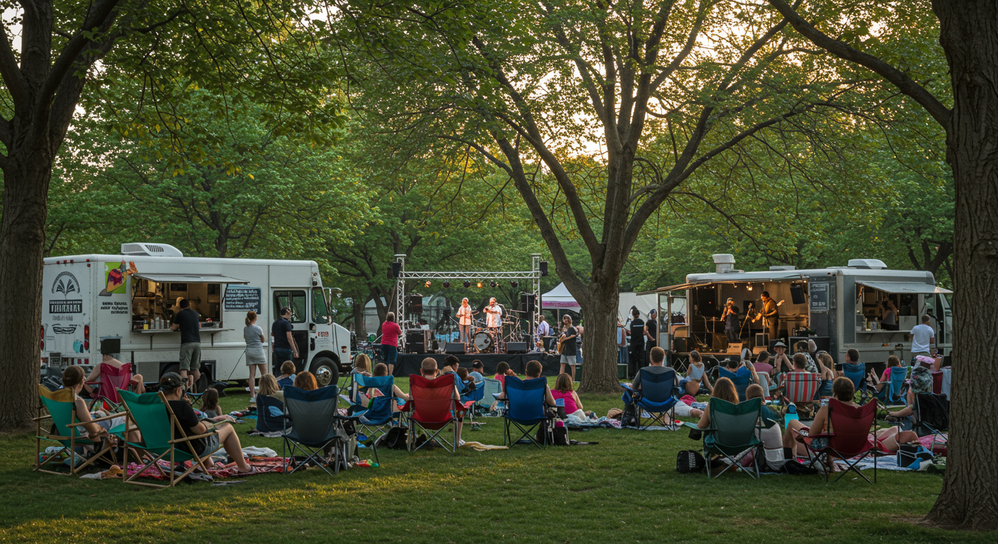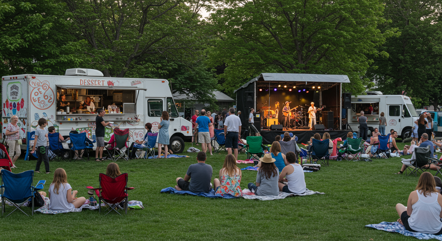 Bring your blankets, lawn chairs, and picnics, then sit back and relax too the sounds of summer! A variety of gourmet Food Trucks and Dessert Trucks will be on-site and available for purchase at all 5 concerts. Jackets or sweaters are recommended as the weather often cools during the latter part of the event.