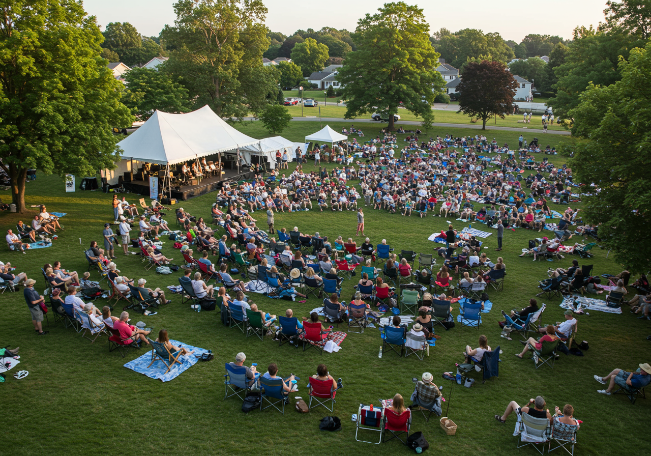 CRPD’s Summer Concerts in the Park are well attended; early arrival to obtain prime lawn seating is encouraged. Event parking is off-site only; on-site parking is limited and reserved for cars displaying handicap placards until the lot is full. Concertgoers are asked to leave pets at home.